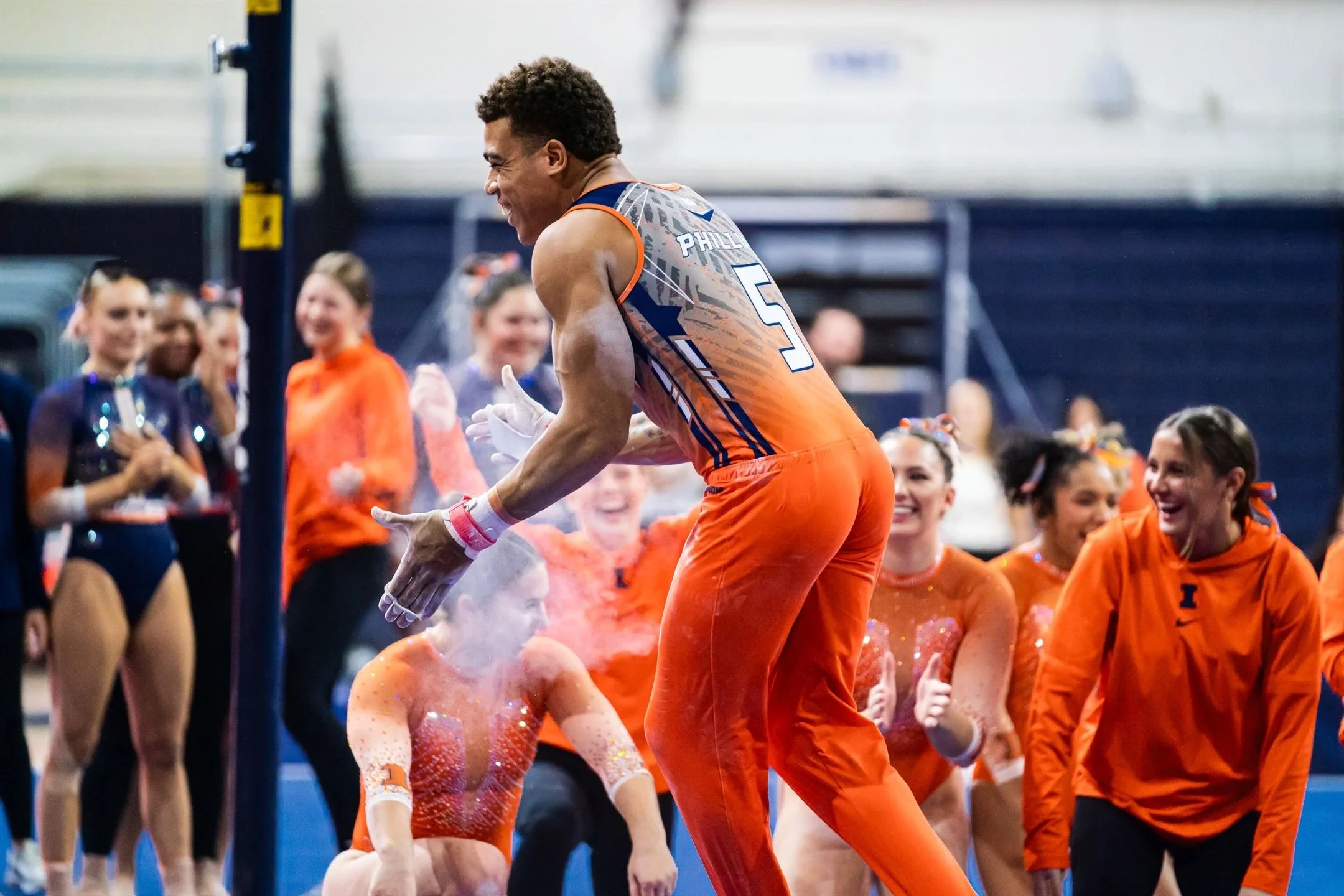 Sam Phillips, a Division I Men’s Gymnast at the University of Illinois. 6× NCAA All-American, a 2024 Nissen-Emery Award finalist, a Big Ten bronze medalist, and was honored as the 2024 Male Student-Athlete of the Year at the NIL Summit Awards.